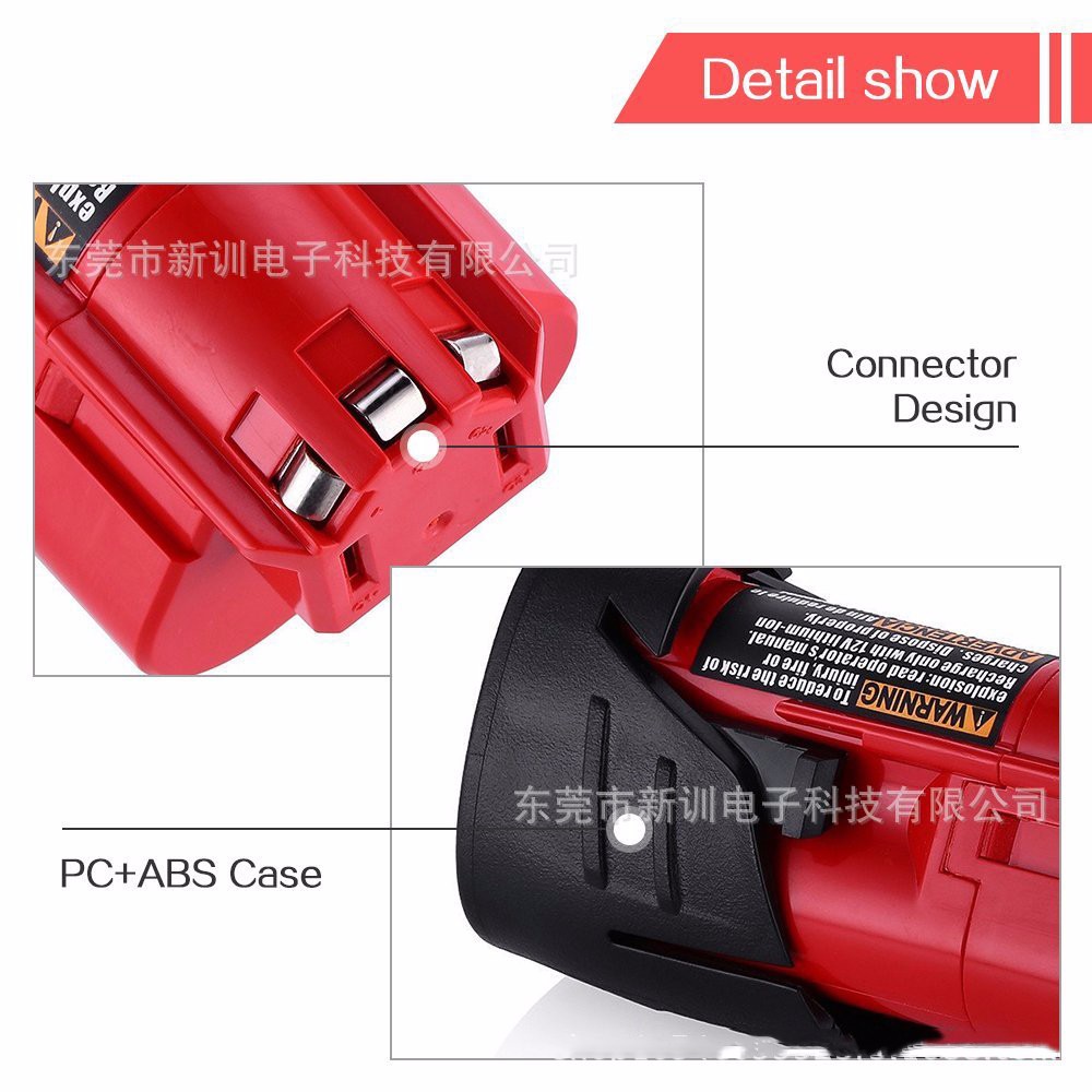 简要描述: 商品名称: 代替米沃奇12V锂电池 商品品牌: 新训 商品颜色: 黑红色 材料组成: ABS+防火材料 产品尺寸:89.7*63.2*112.5mm 产品重量: 180g 容量:1500mah 2000mah 产品代码:Milwaukee 48-11-2401, 48-11-2402, C12 B, C12 BX, M12 兼容型号:Milwaukee 49-24-0145,Milwaukee 49-24-0146 Milwaukee 2000 Series 2207-20, 2207-21, 2238-20, 2238-21, 2239-20, 2239-21, 2276-20NST, 2276-21, 2276-21NST, 2277-20, 2277-20NST, 2277-21, 2277-21NST, 2290-20, 2290-21, 2310-21, 2311-20, 2311-21, 2312-21, 2313-20, 2313-21, 2314-20, 2314-21, 2320, 2320-20, 2320-21, 30, 2331, 2332, 2333, 2401-20, 2401-22, 2410, 2410-20, 2410-22, 2411-20, 2411-22, 2415-20, 2415-21, 2420-20, 2420-21, 2420-22, 2426-20, 2426-22, 2429-20, 2429-21XC, 2432-20, 2432-22, 2446-20, 2446-21XC, 2450-20, 2450-22, 2451, 2451-20, 2451-22, 2455-20, 2455-22, 2456-20, 2456-21, 2457-20, 2457-21, 2458-20, 2458-21, 2460-20, 2460-21, 2470, 2470-20, 2470-21, 2471, 2471-20, 2471-21, 2471-22, 2590-20 Milwaukee C12 Series C12 D, C12 DD, C12 HZ, C12 IC, C12 ID, C12 IW, C12 PC, C12 PD, C12 PPC, C12 WS Milwaukee M12 Series M12 IR, M12 JS